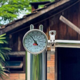Dois termômetros para controle exato da temperatura, um posicionado na panela e outro na parte superior da alonga